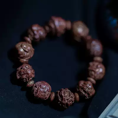 Longsheng nine son Hainan Huanghua Pear hand string single Circle Sea yellow purple oil pear men carved sandalwood bead grimace 0688
