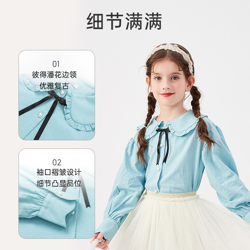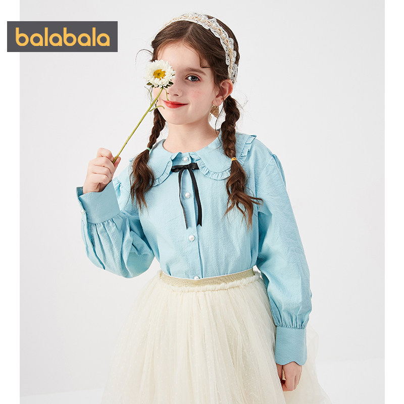 Balabara girl long sleeve shirt CUHK Scout white shirt spring autumn new children blouses baby boom