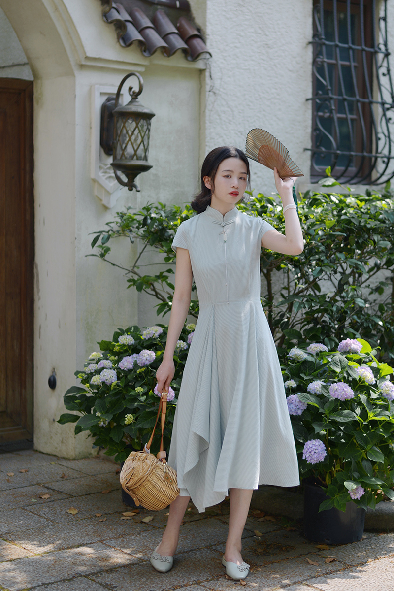 WANTING Late Wind Back Little Building dark grid irregularly designed flagrobe dress