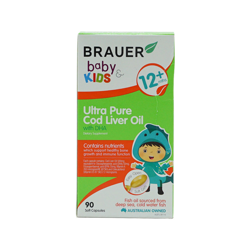 Australian brauer Bei'ao children's cod liver oil pills baby dha soft capsules 90 small green bottles