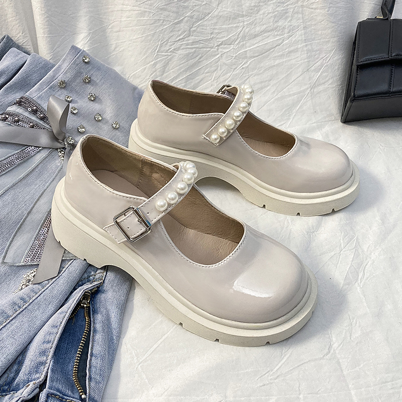 Fa-style retro Inn Wind with small leather shoes 2022 Spring new pearls Design Feminists Small crowdsourced Marie Precious shoes