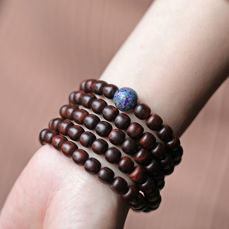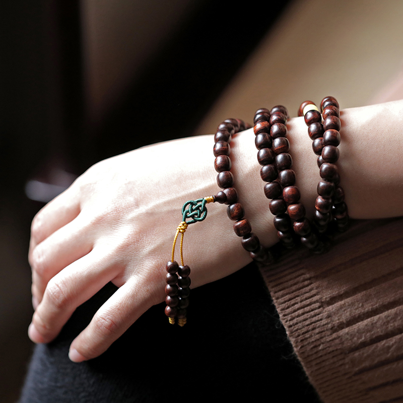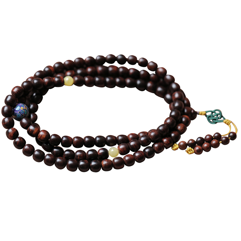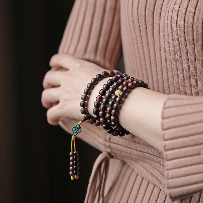 Snow Hainan Huang Pearl 108 bracelet Hayellow Hangbang Line Pearl Wood Buddha - Wood Bracelet 0049