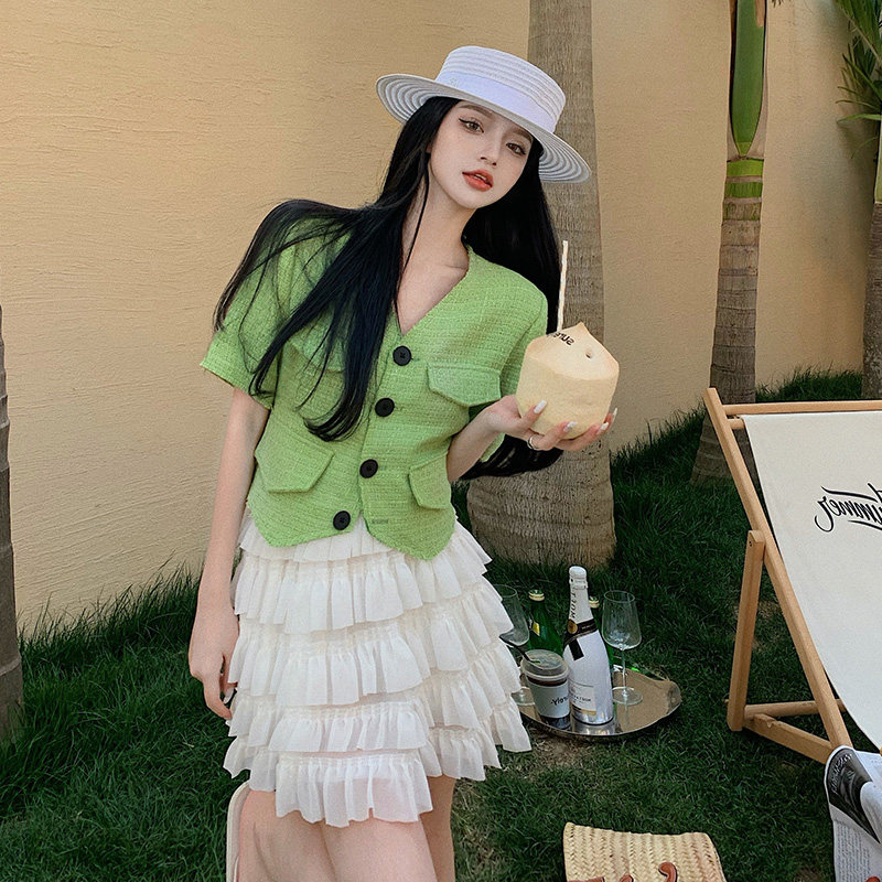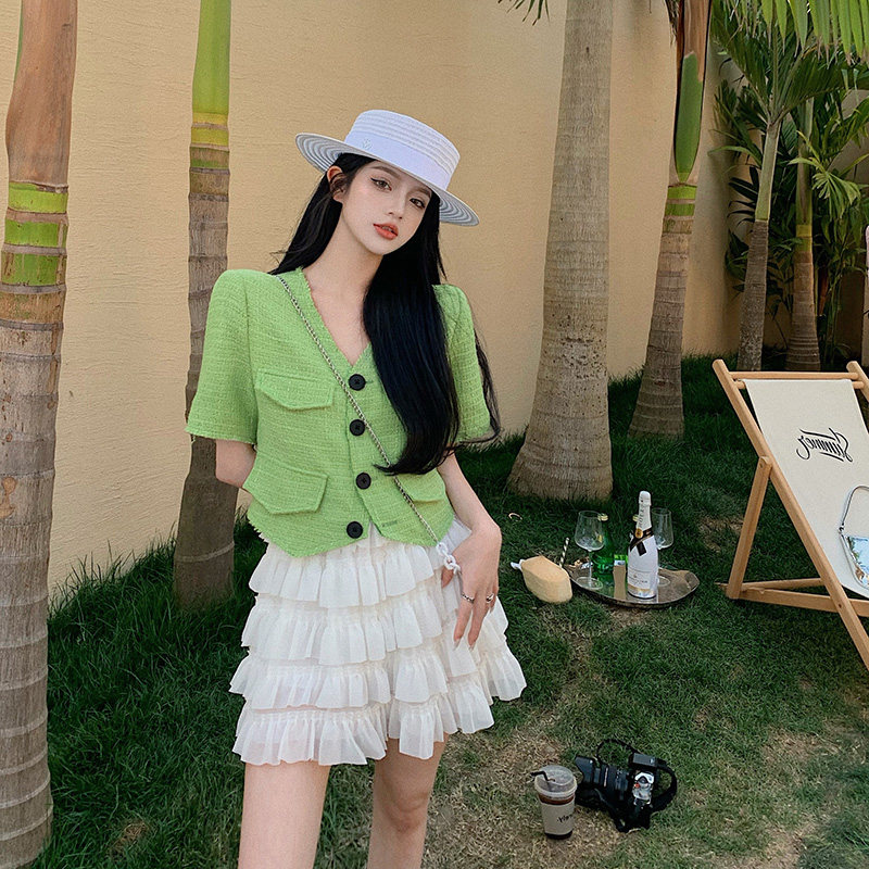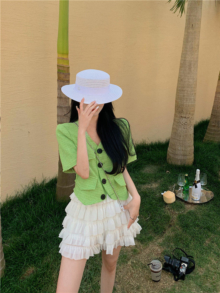 2022 Summer new women's gentle wind suit can be salt-sweetened cake skirt French style first love sweet and windy