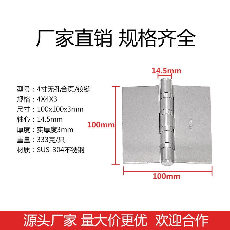 SUS304 stainless steel 4 inch thickened non-porous welded hinge industrial hinge vigorously heavy hinge 100*100*3