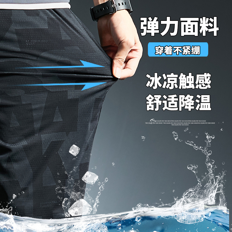 2023 Summer Ice Wire Bowl Men Shorts Leisure Five - Scale Pants Wear Sports Pants Dry
