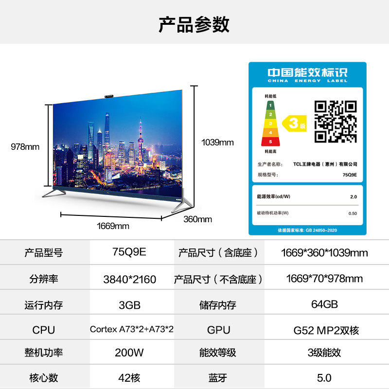 TCL 75Q9E 75-inch ultra-thin QLED quantum dot social smart screen 4K network flat-panel LCD TV