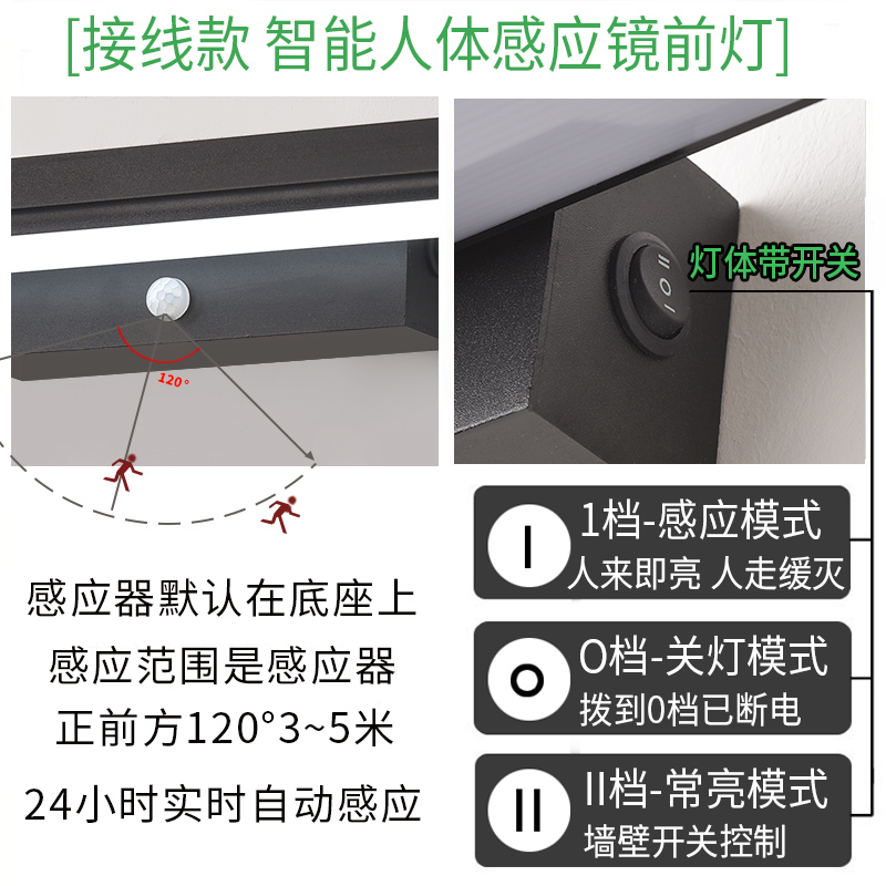 Intelligent human body induction mirror headlight led bathroom mirror light Nordic minimalist bathroom punch-free make-up fill light