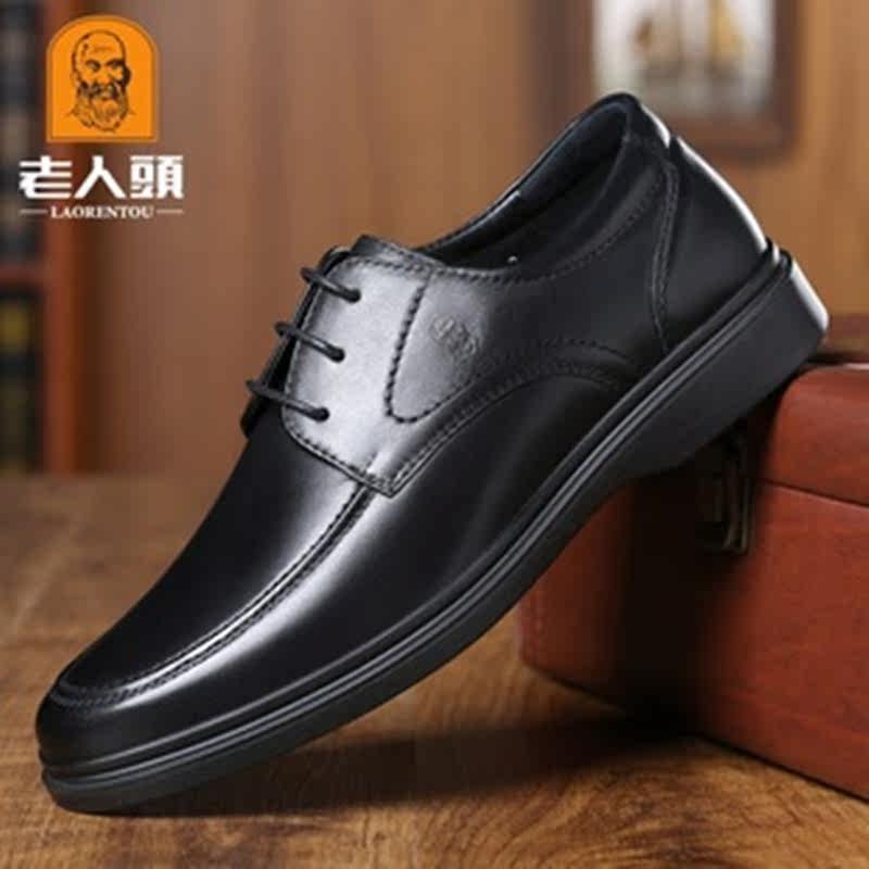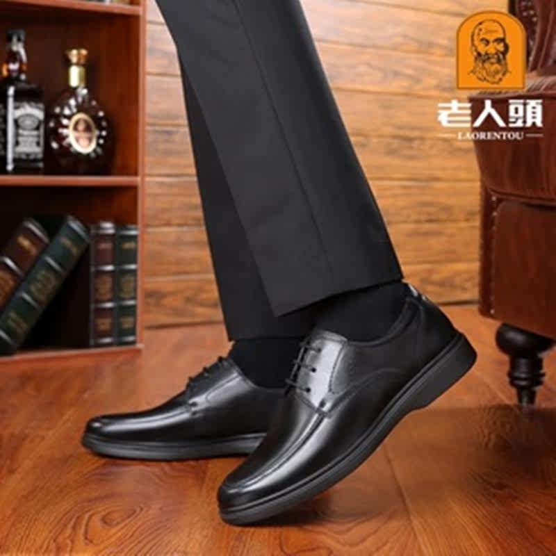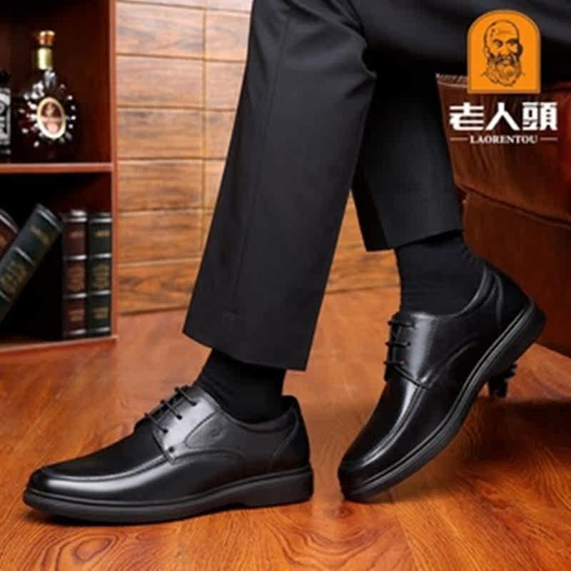 Old Man Head Black Leather Shoes Men Genuine Leather Casual Bull Leather Shoes Lace Business Positive Dress Derby Shoes Staff Work Single Shoes