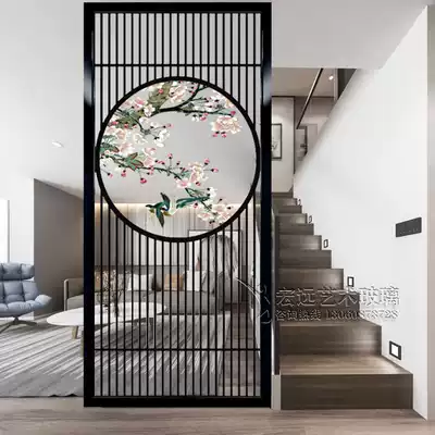 Simple modern art glass double-sided frosted tempered craft screen living room compartment entrance entrance fengshui magpie