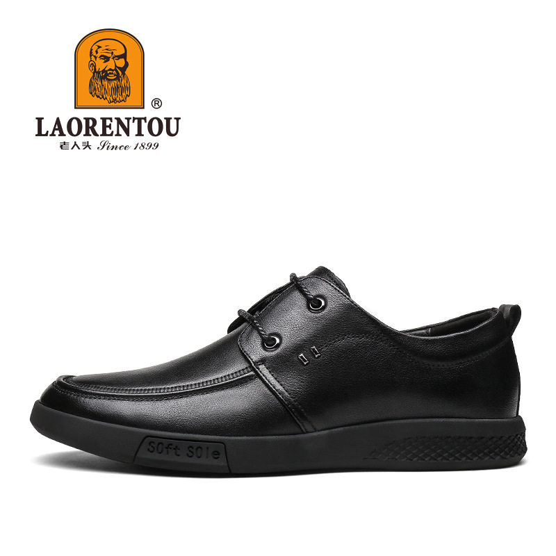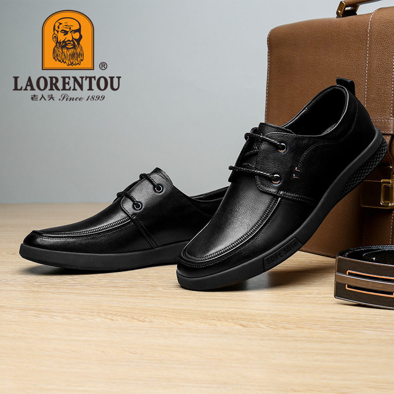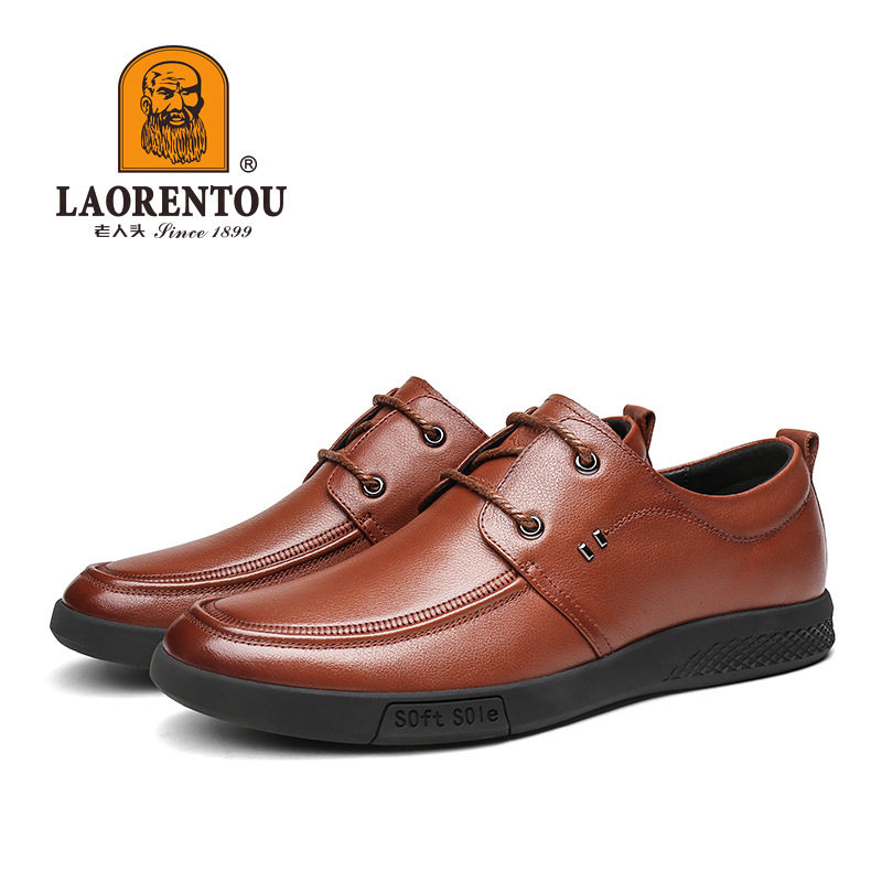 Old man's head men's leather shoes toe layer cowhide British formal dress Derby shoes youth business casual men's shoes soft sole soft surface