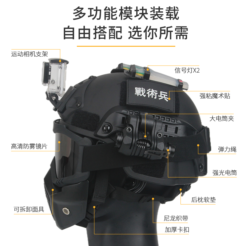 Tactical Soldier MICH Tactical Safety Helmet Anti-Fog Rider Mask Suit Riding Field Shooting Video Eat Chicken Triple head