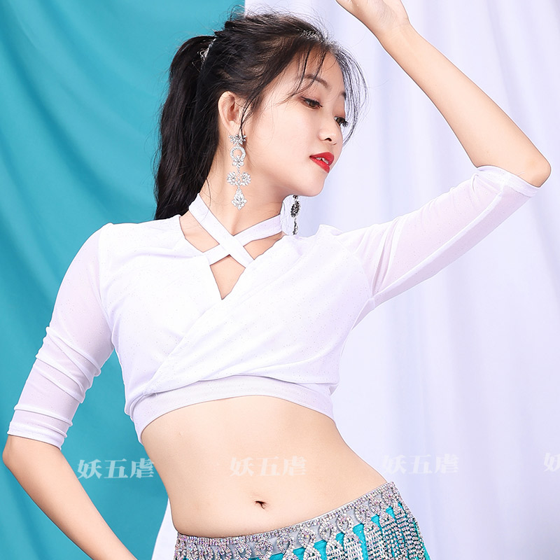 Belly dance top 2021 new Breathable leopard print mesh mid-sleeve size oriental dance practice costume woman