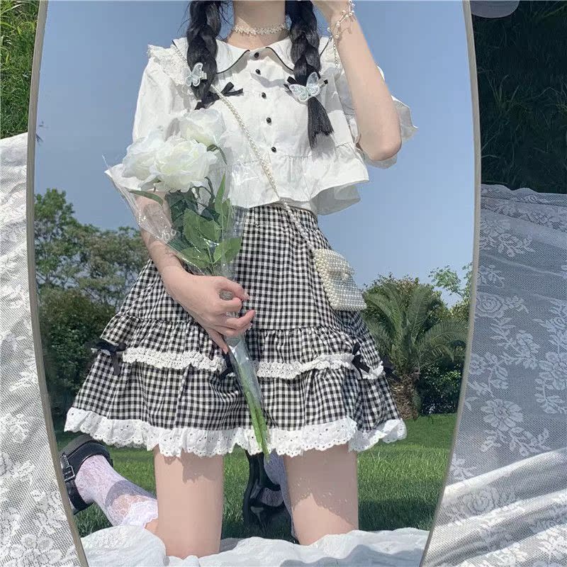 White shirt Plaid skirt suit White shirt one-piece Plaid skirt one-piece