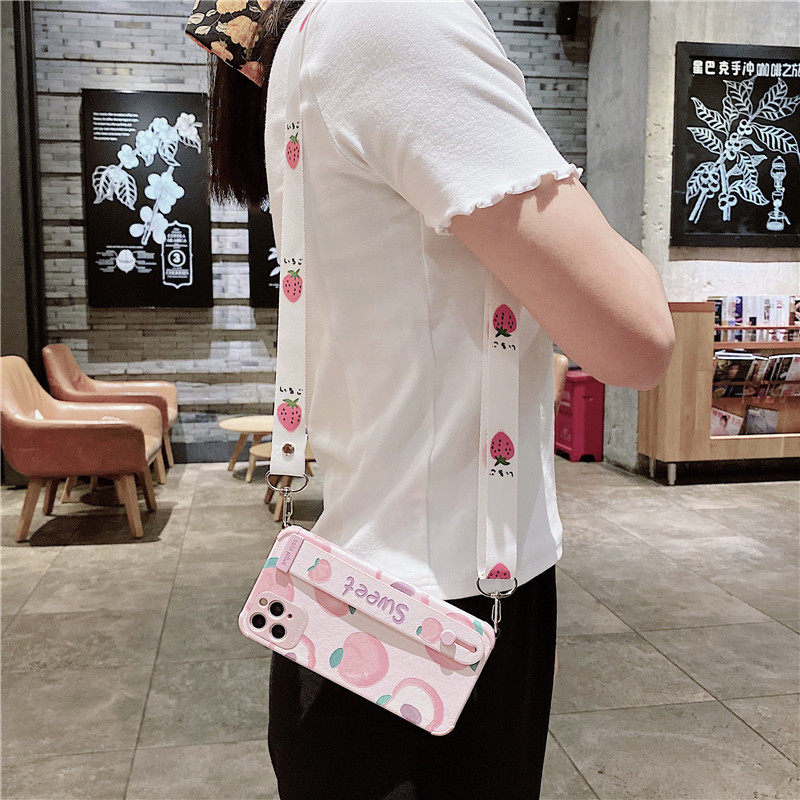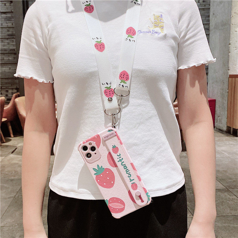 Small fresh strawberry suitable for iphone11 mobile phone protective case messenger lanyard apple 12 silicone sleeve 13promax soft shell x xs xr all-inclusive anti-fall thirteen s backpack female creator