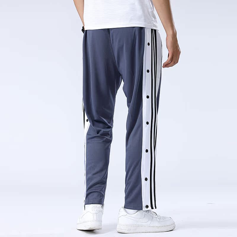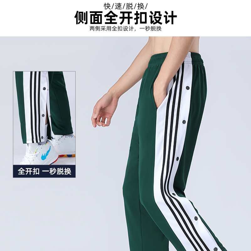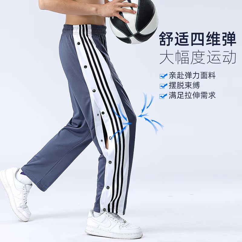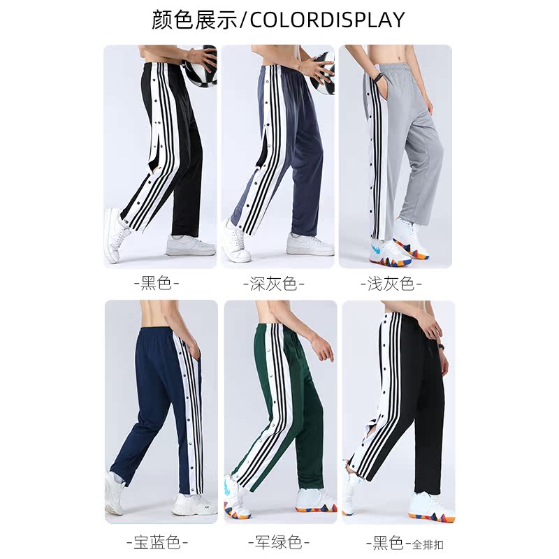Basketball breasted pants men's summer thin section full open button road pants straight large size wide leg side loose sports long pants