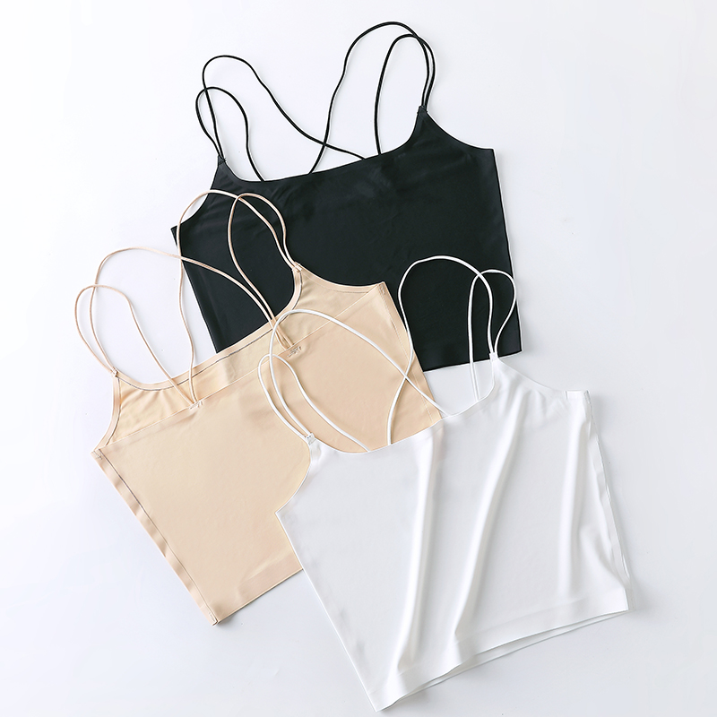 2 cross beauty back base suit with bandeau underwear suspender ice silk vest thin white anti-naked woman