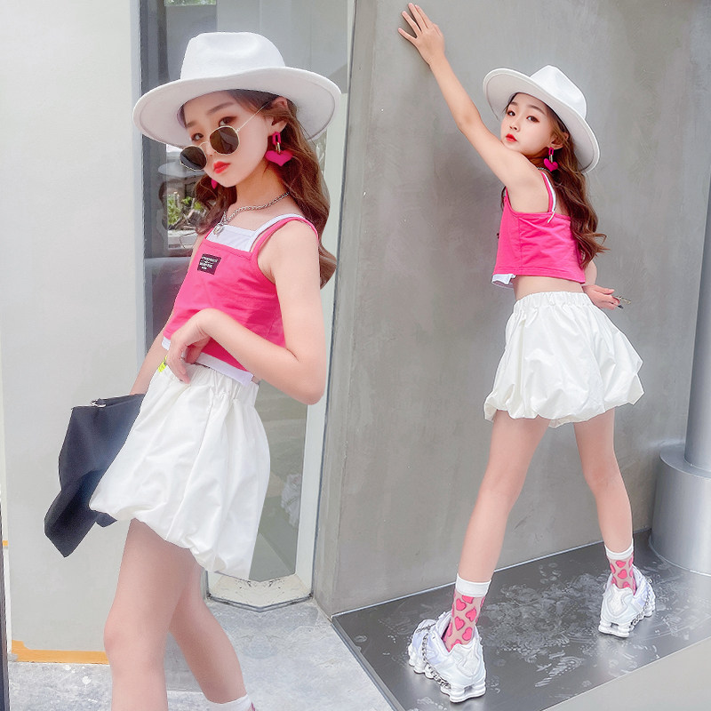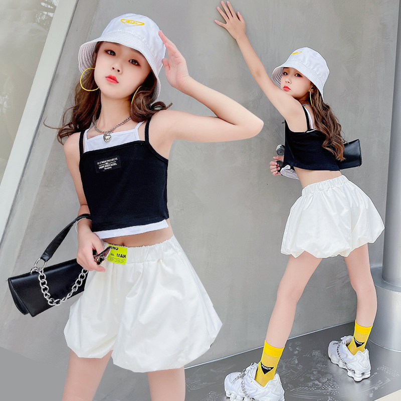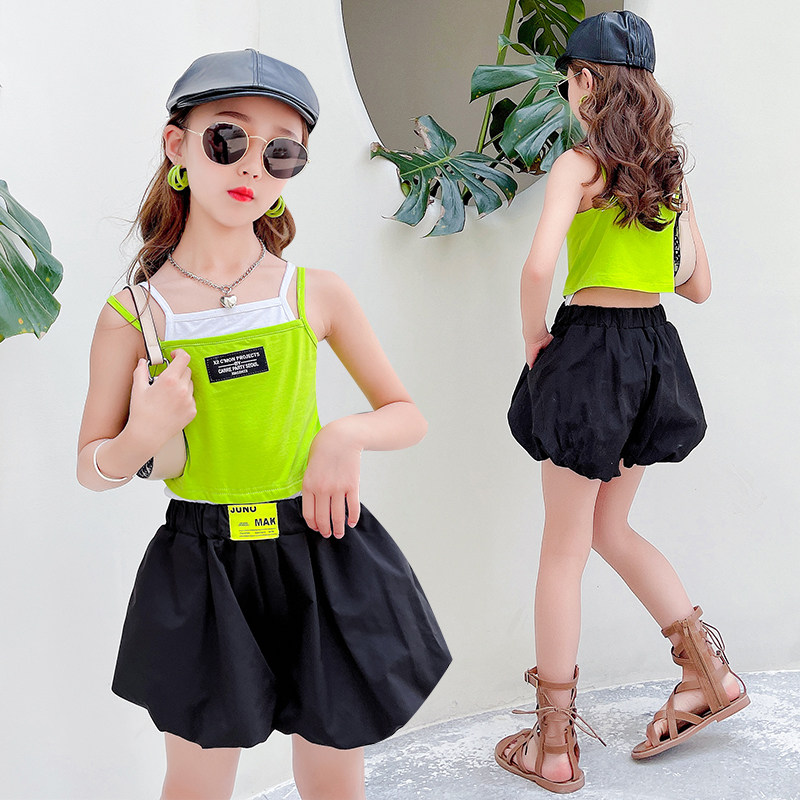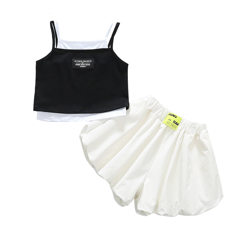 South Korean girl's summer new pint of new polenta straps two sets of children's vest shorts suit baby sports suit