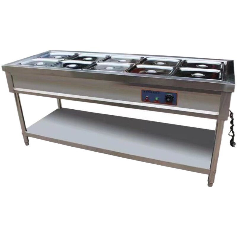Commercial Fast Food Insulated Bench Glass Hood Canteen Electric Heating Fast Food Truck Beats Vegetable Table Soup Pool Automatic Temperature Control Dinner Table-Taobao