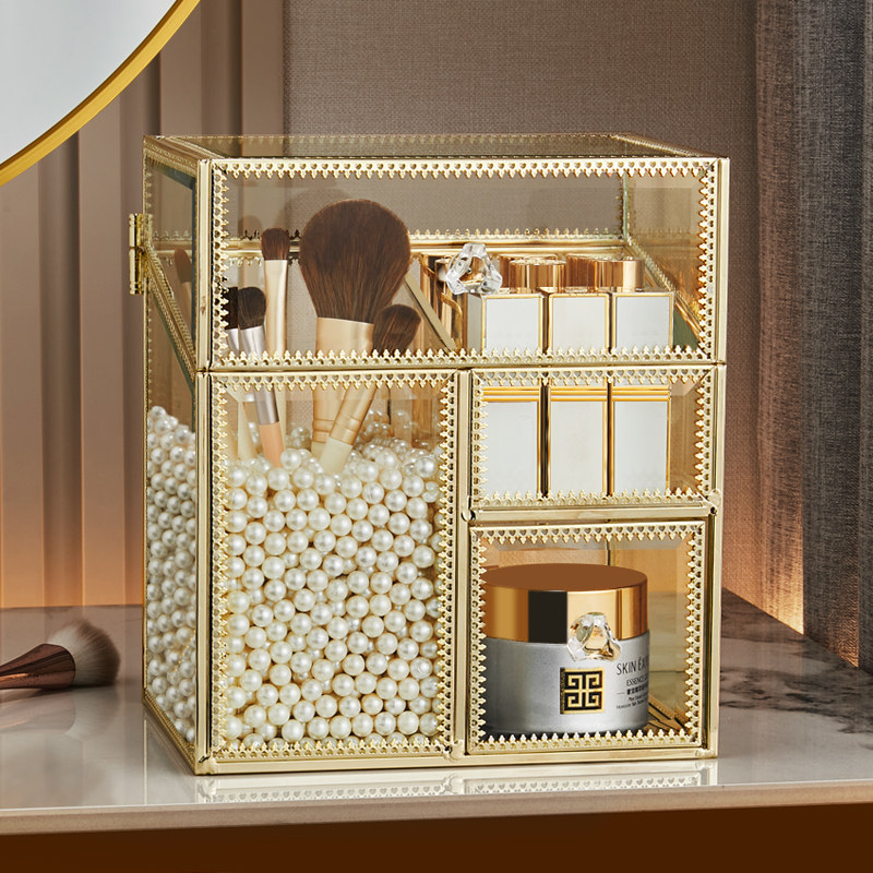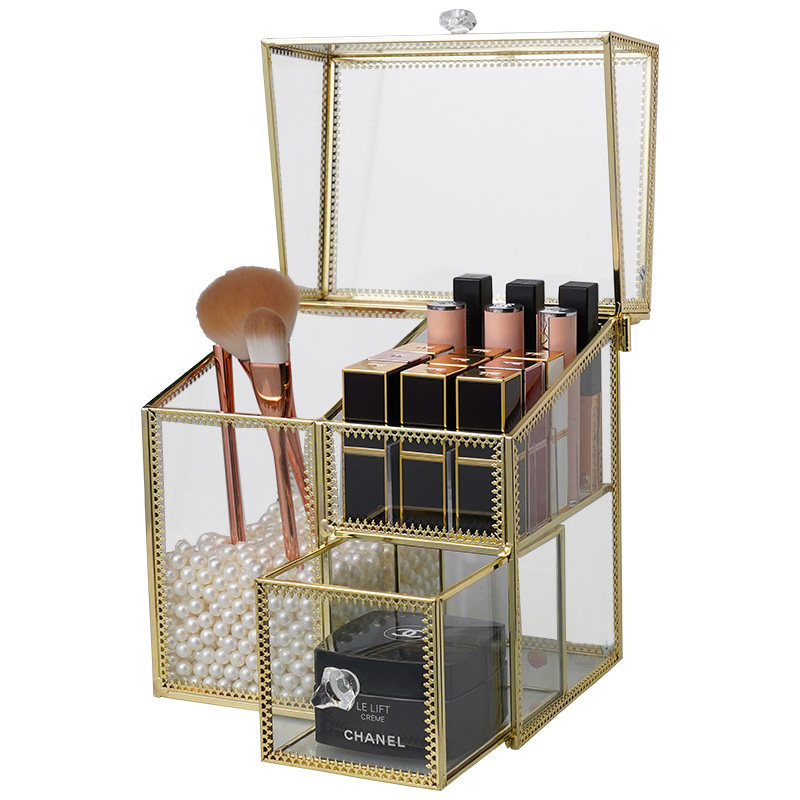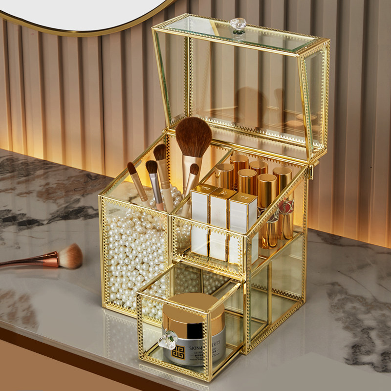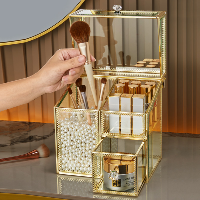 Large golden multi-function brush bucket to send pearls with 15 lipstick lattices] Large golden multi-function brush bucket to send pearls without spacer] Medium golden square brush bucket Medium golden multi-function brush bucket to send treasures