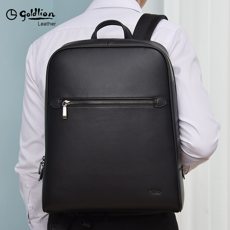 Goldlion Backpack Men's Backpack Genuine Leather Large Capacity Leisure Travel Business Computer Bag Cowhide Fashion Trend