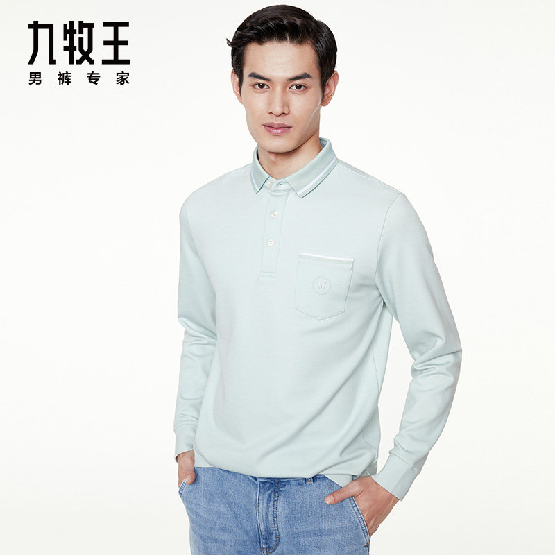 Nine Shepherd Men's Menswear Long Sleeve T-shirt Springtime Jersey Pure Color Minimalist Turnover Inside Business Polo Jersey Man