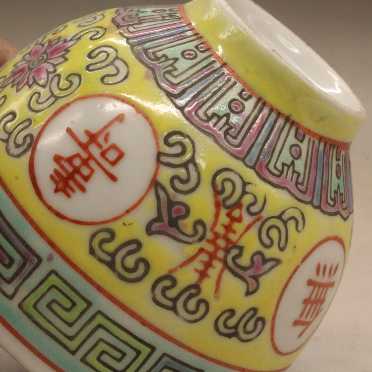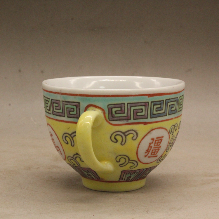 Antique factory goods yellow glaze longevity boundless coffee cup ornaments antique antique antique porcelain ornaments collection