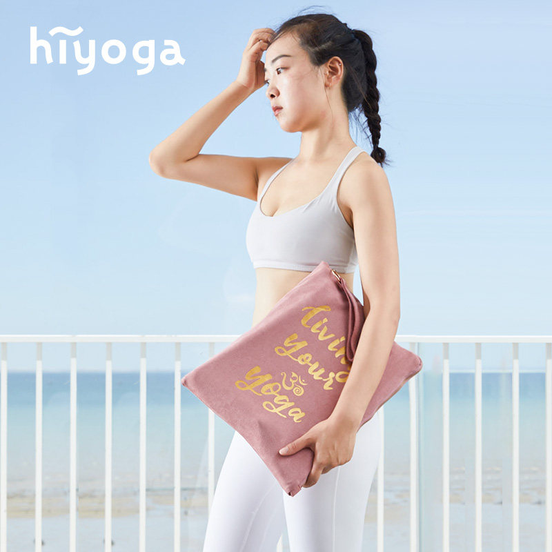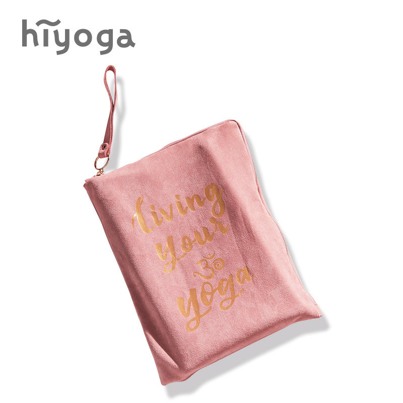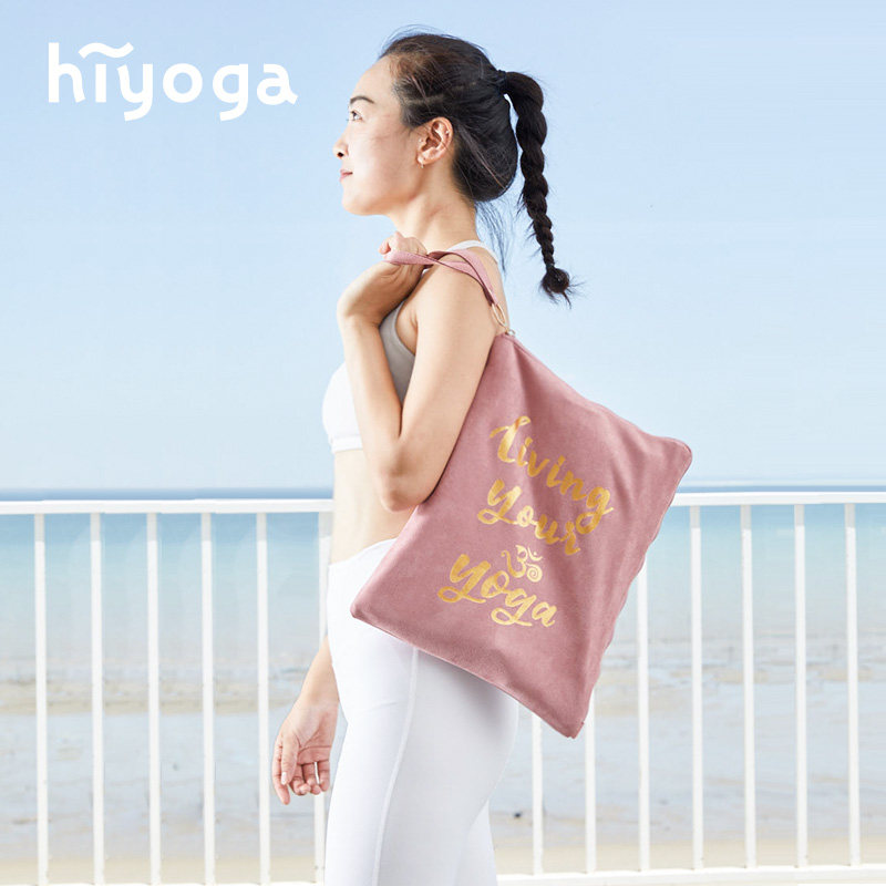 hiyoga suede yoga bag ultra-thin portable large-capacity letter printed yoga towel storage bag handbag