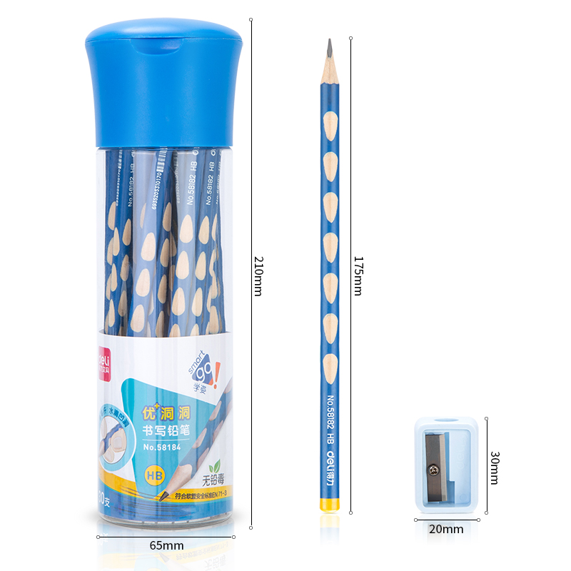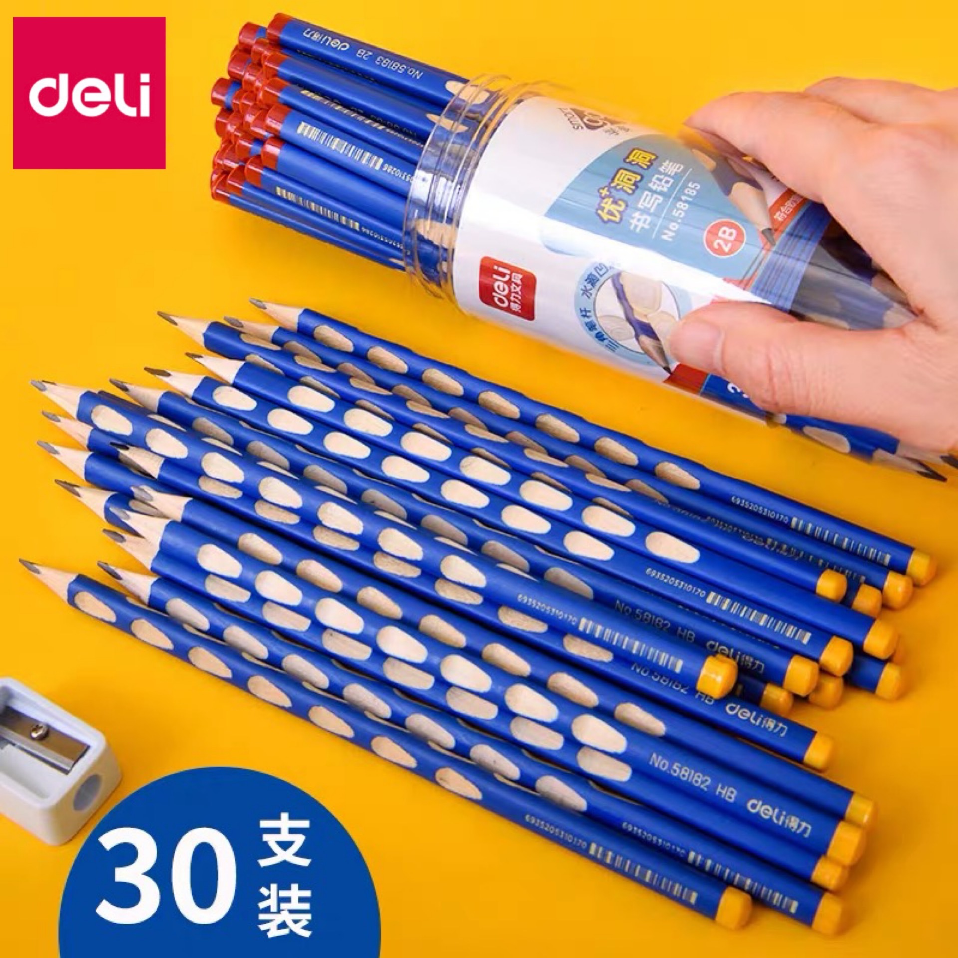 Chunya ● Deli hole hole pencil triangle rod 30-pack HB 2B student correction grip ballpoint pen