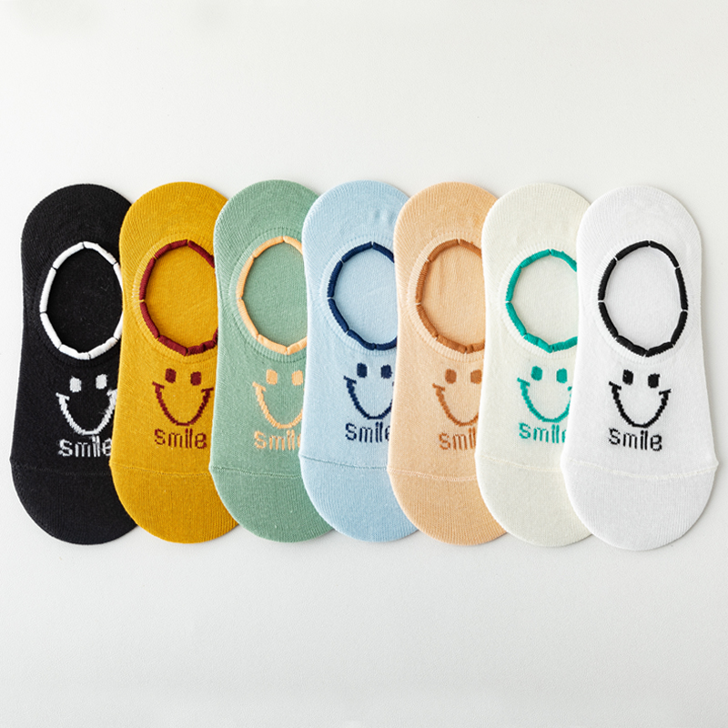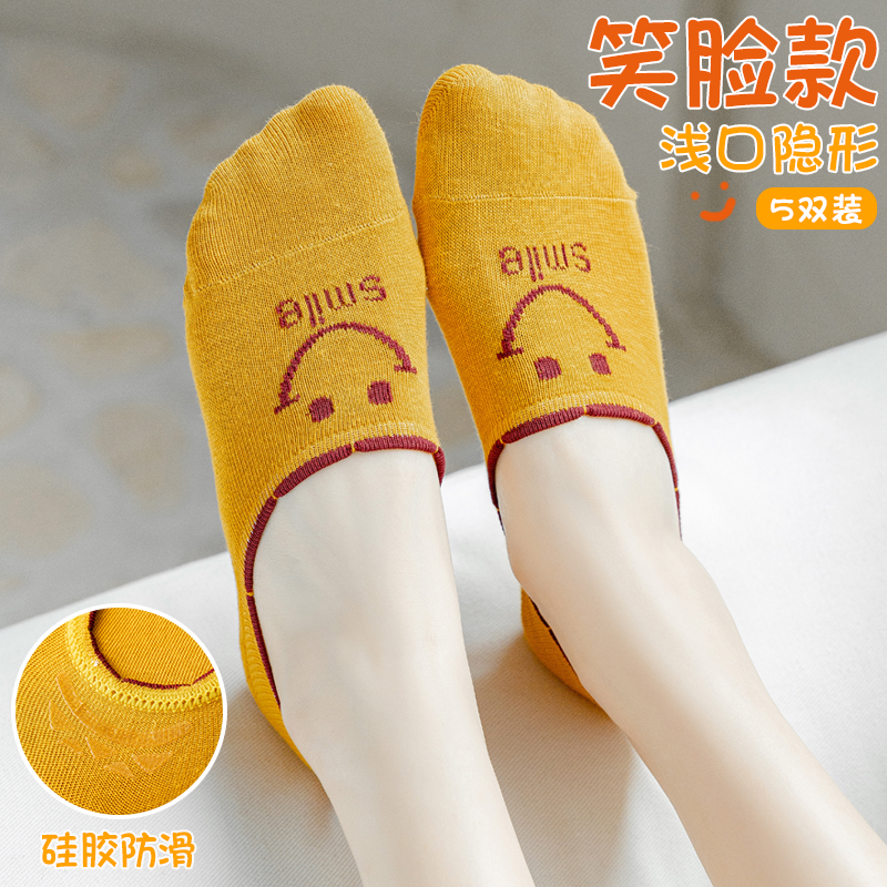 Invisible socks female invisible non-slip anti-fall heel spring Summer thin section Shallow Mouth Pure Cotton Cute Day Ensemble Laughing face Sox Children Summer