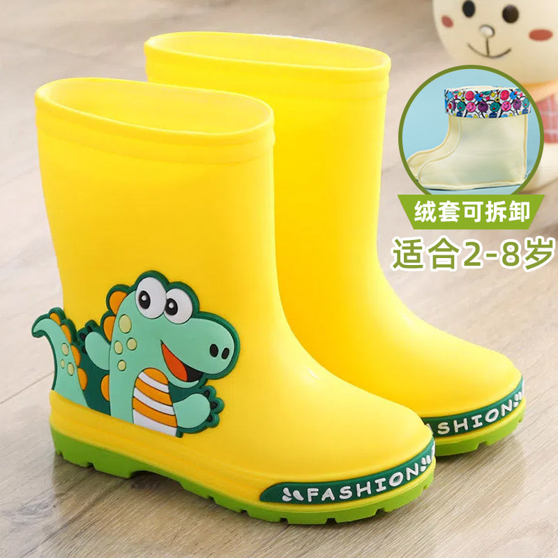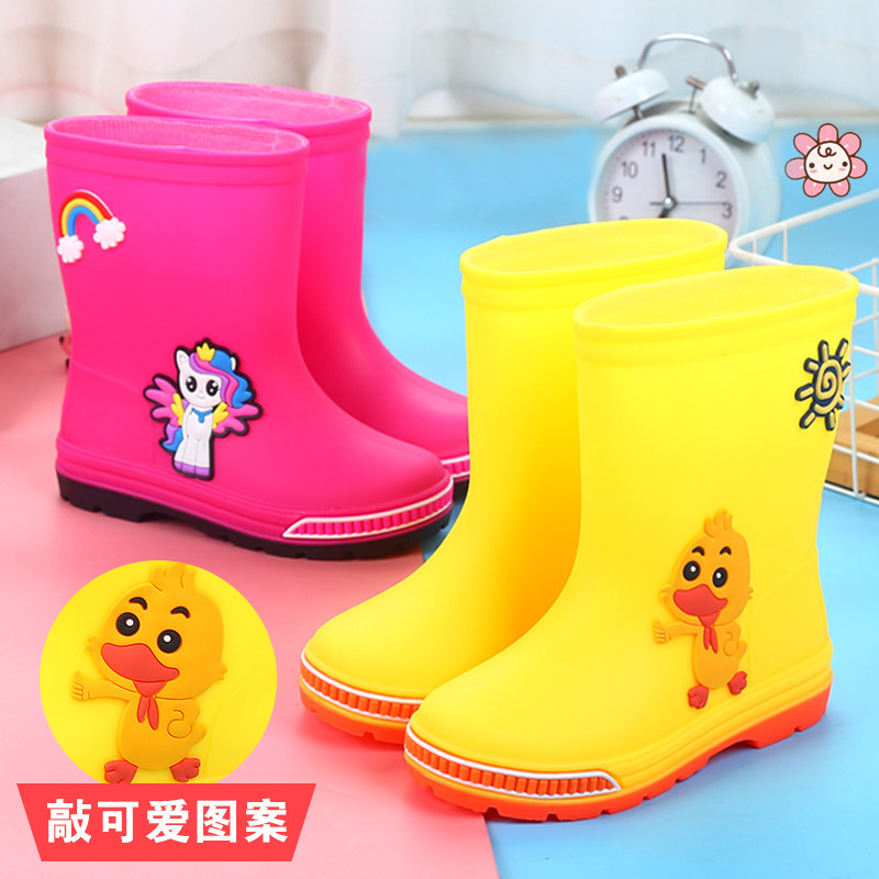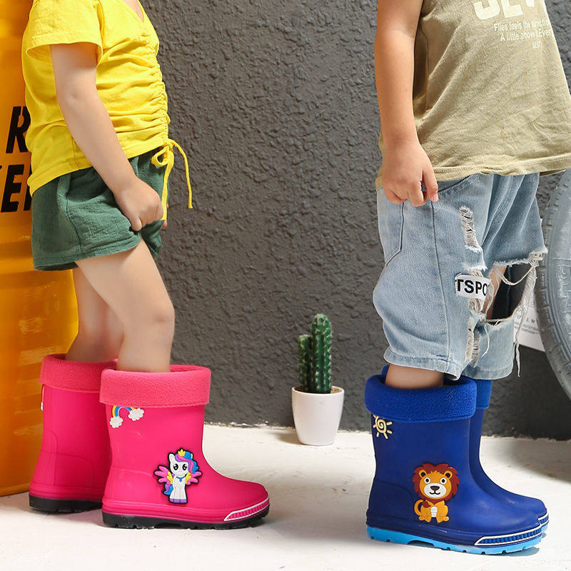 Cartoon children's rain boots boys baby non-slip rain boots girls children's new water shoes plus velvet waterproof kids rubber shoes