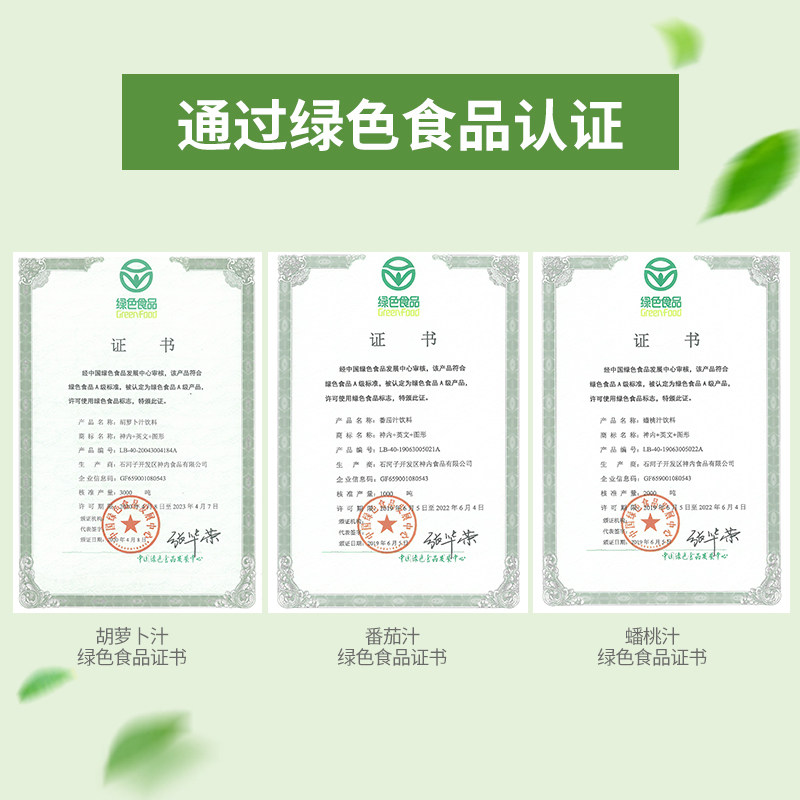 Carrot Juice 238ml*8 Bottles (Free 2 Bottles) Pomegranate Juice 238ml*8 Bottles (Free 2 Bottles) Peach Juice 238ml*8 Bottles (Free 2 Bottles) Tomato Juice 238ml