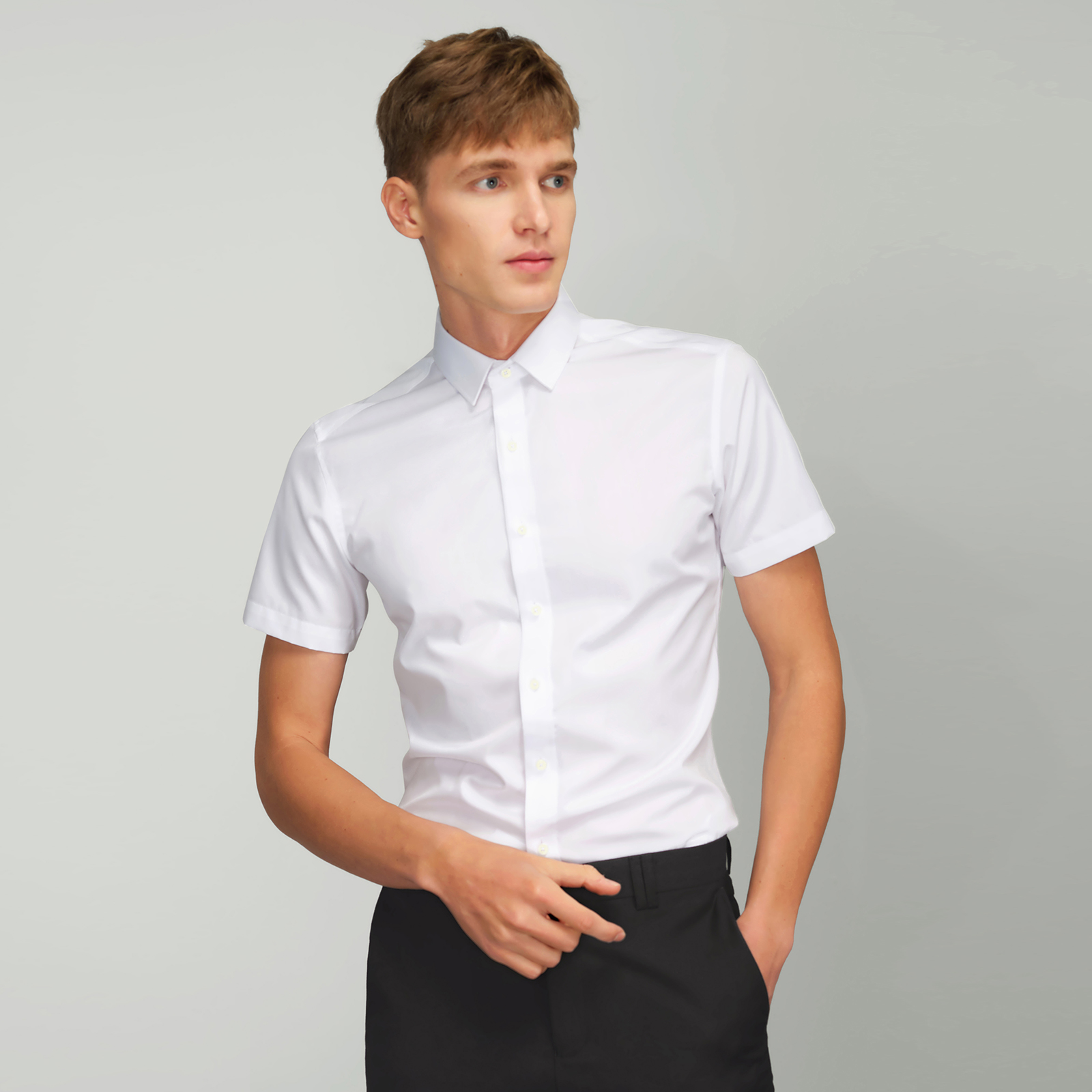 White shirt - female light blue shirt - female white shirt - male light blue shirt - male