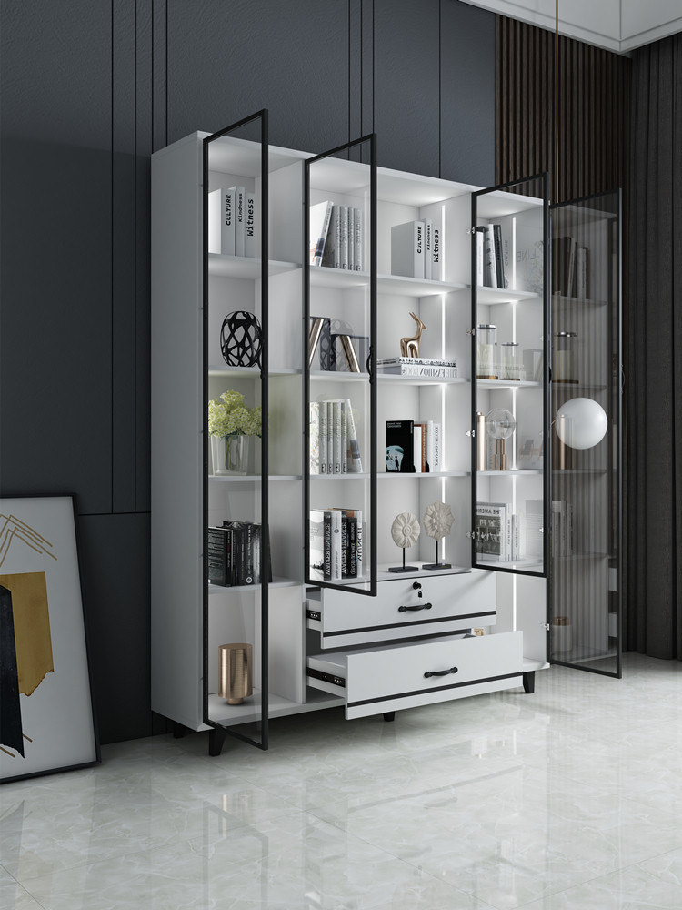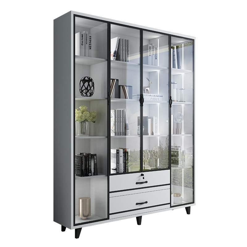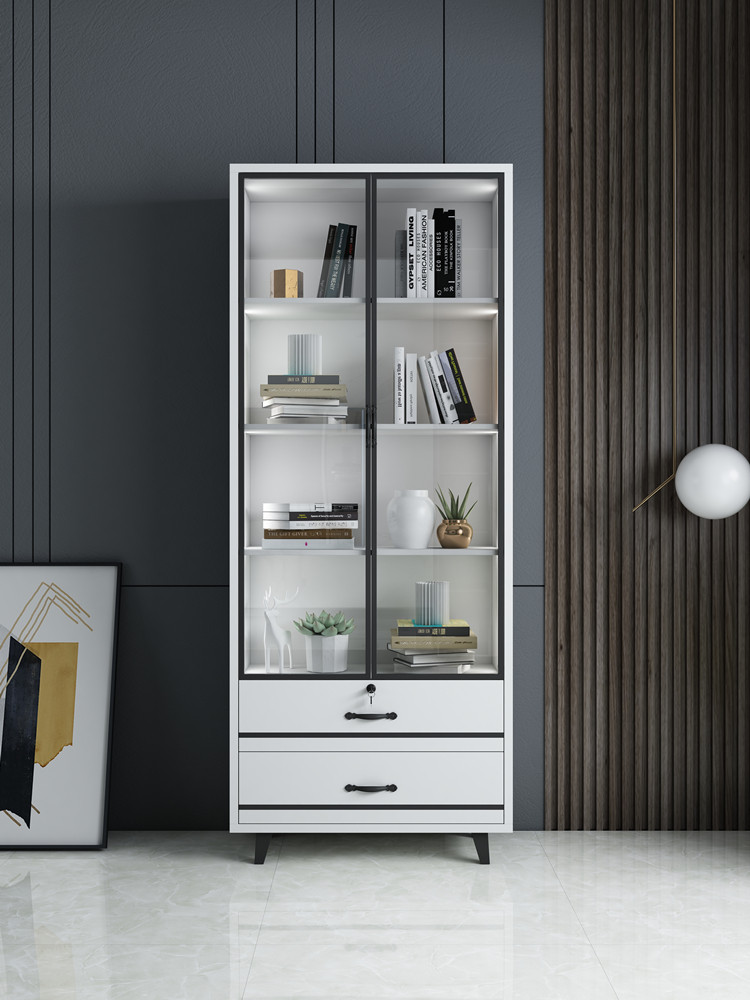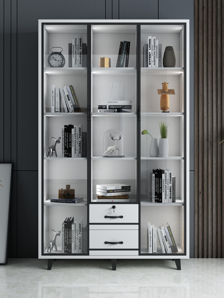 Nordic light luxury tempered glass door single door bookcase bookcase storage cabinet study display cabinet combination bookcase with light