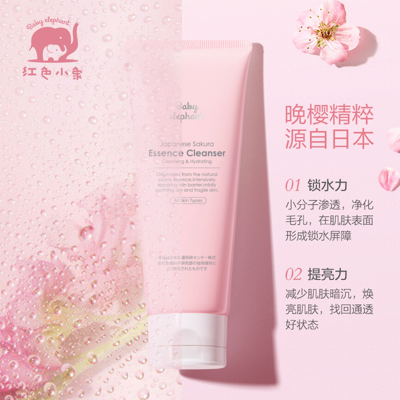 Red elephant Japanese late cherry cleanser amino acid female facial cleanser pregnant women can use foam to clean and moisturize