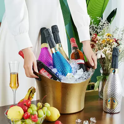 Large red wine iced bucket stainless steel ice bucket home beer champagne Basin net red creative bar ktv ice wine Basin