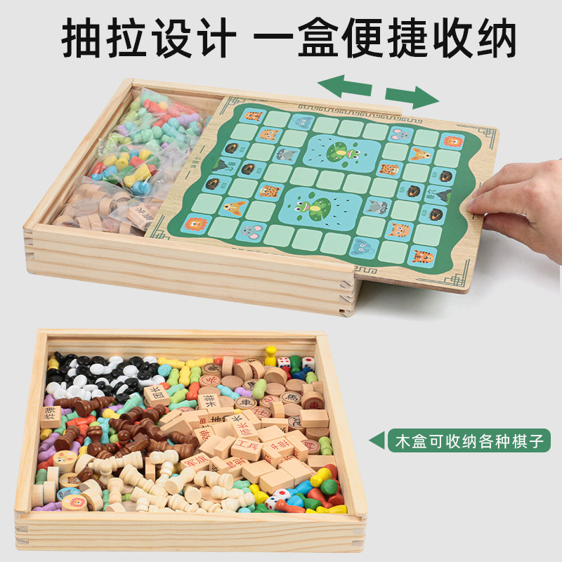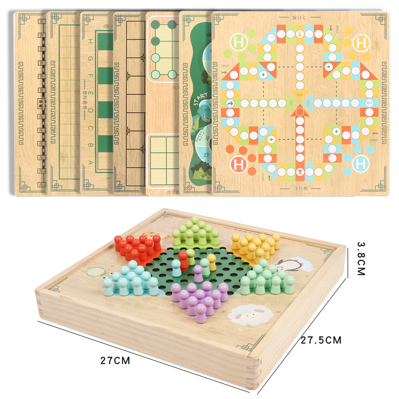 (Hot Pin) Eight-in-one full set of 7 gameplay (hot pins) wood case Seven all-in-one 2 Gameplay Two-in-one (Flight Chess Five Chess) Two-sided Two-in-one (Chess Five Chess) Two-sided Two-in-one