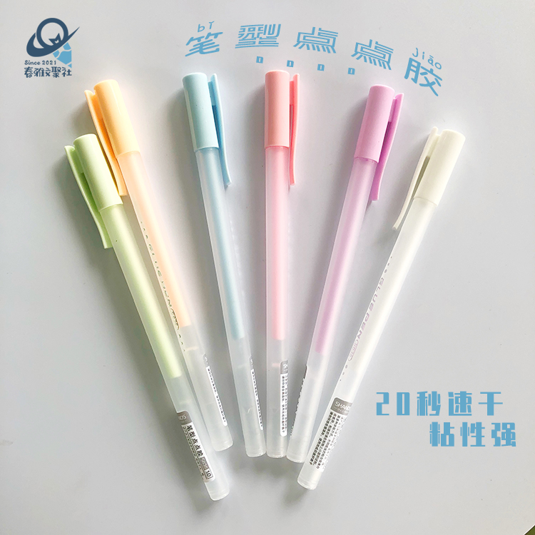 Chunya color pen type dot glue macaron 6-color portable hand account quick-drying glue handmade liquid glue pen 3 packs