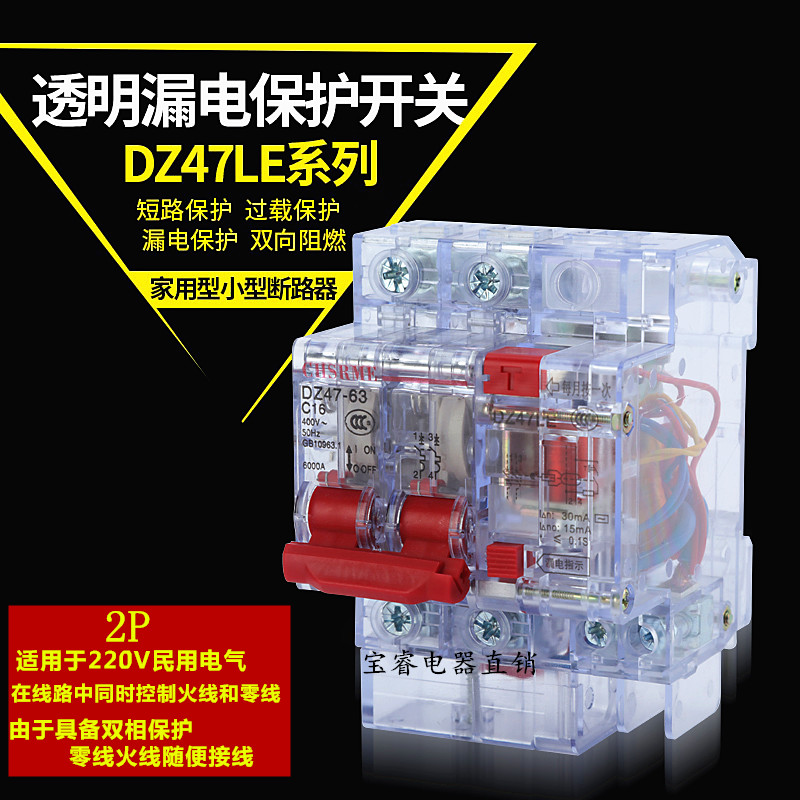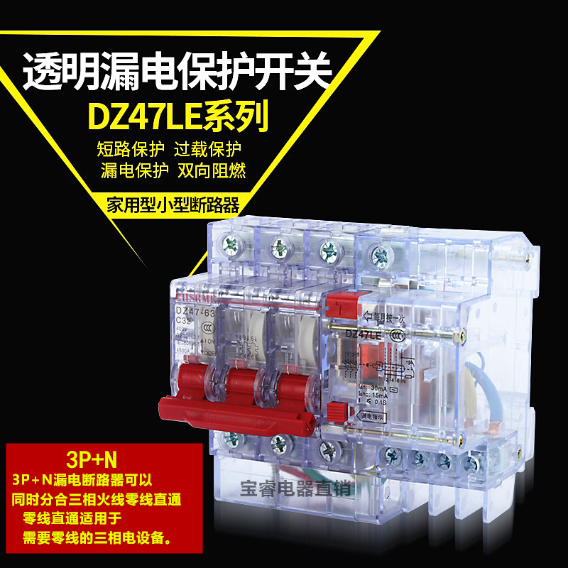 Breaker transparent protection shell earth leakage protector DZ47LE 2P 3P 20A63A32A Home leakproof air switch