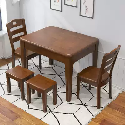 All solid wood dining table and chair combination 4 people 6 people small apartment rubber wood square household dining table eight fairy table 830