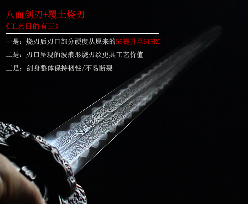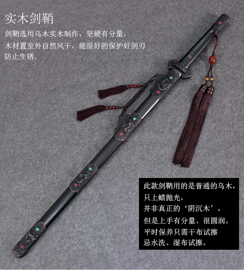 Dragon ripples Tangier sword Tangier knife long sword knife sword Eight faces Han sword flower pattern steel sword Longquan city One unopened blade