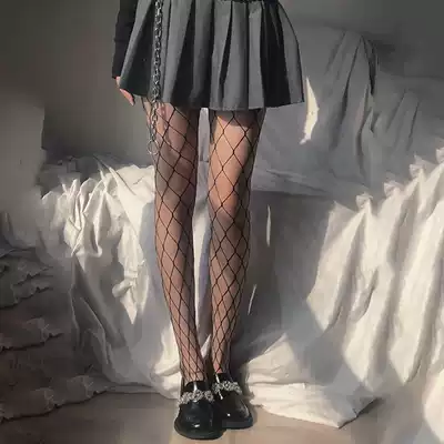 Fishnet socks women's summer jk sexy black silk tights black grid hot girls thin stockings white large size net socks
