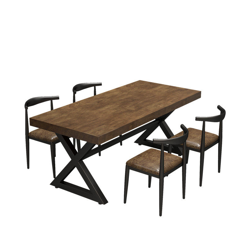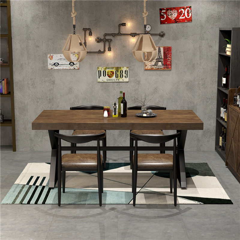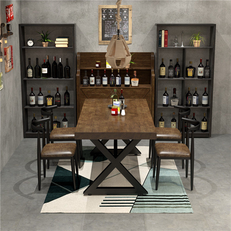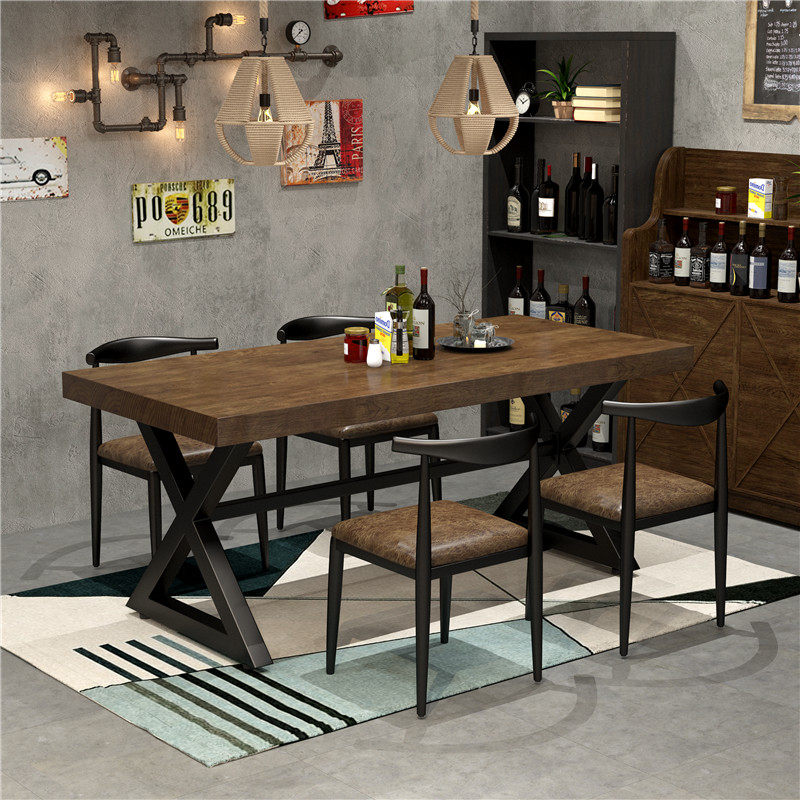 Industrial wind retro wooden table restaurant rectangular iron tablesBBQ bar rectangular tables and chairs combination