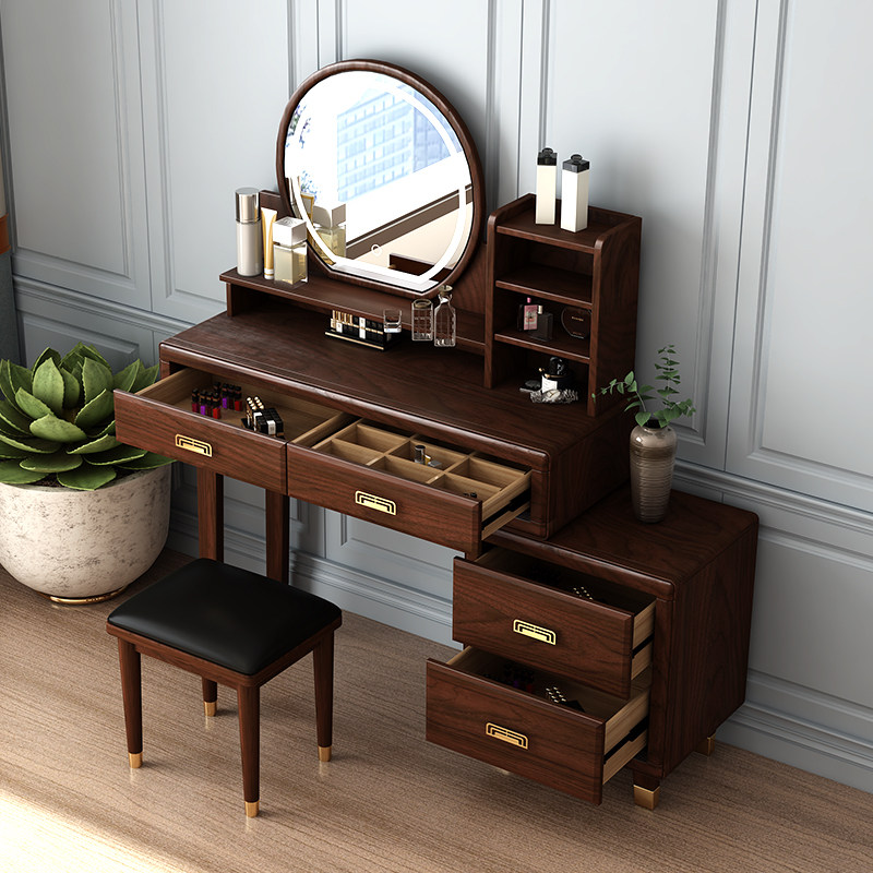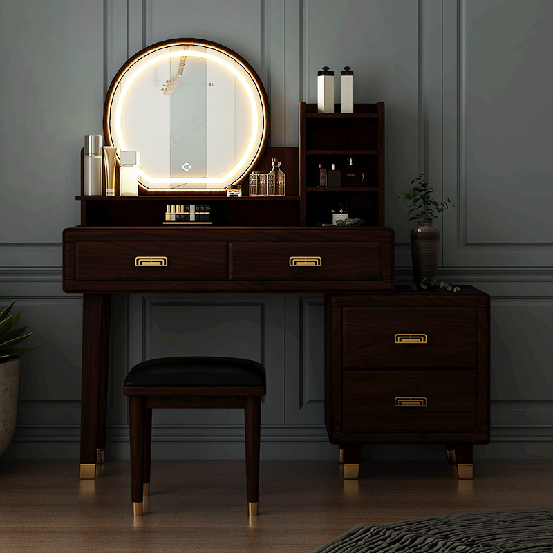 Chinese style make-up bench bedroom modern minimalist small household type full solid wood with lamp makeup table storage cabinet integrated multifunction