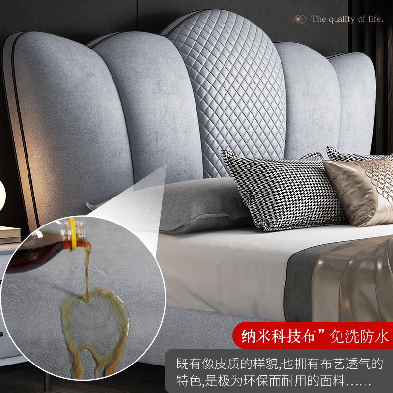 Light luxury technology cloth bed master bedroom modern simple small apartment double bed soft bag big bed Italian Net red cloth bed