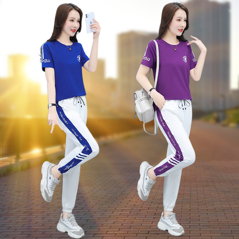 Summer Sports Suit Women Casual Fashion 2023 Yangqi Dance designer thin section Running suit Short sleeves Two sets-Taobao