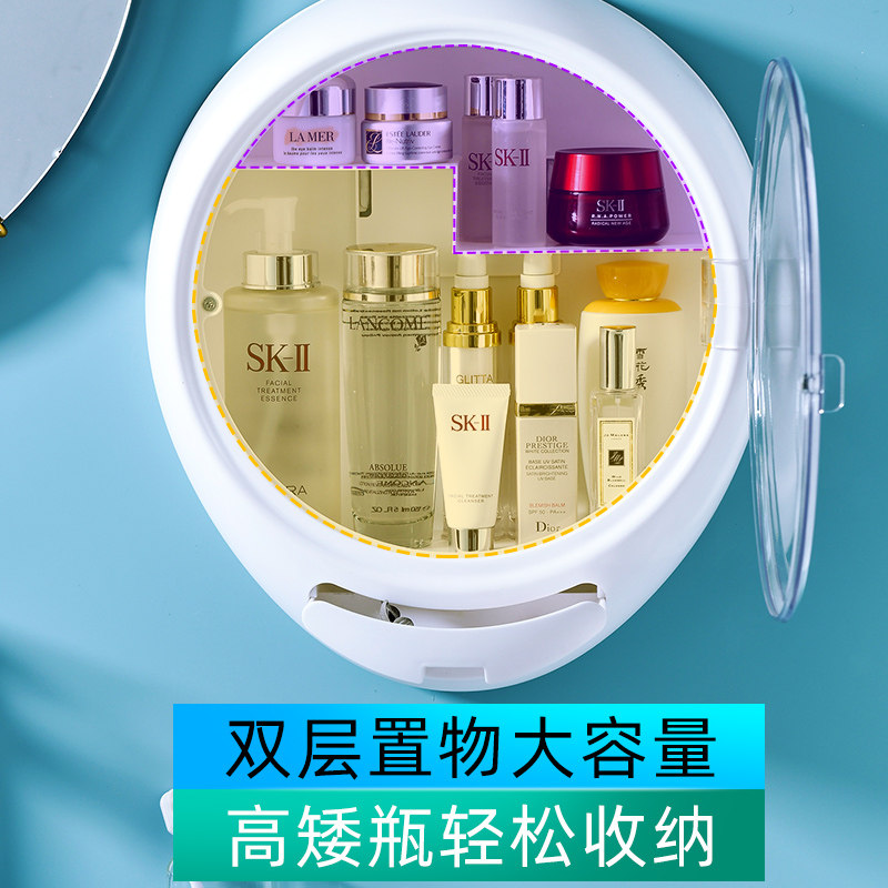 Cosmetics container box hanging wall mounted large-capacity skin care products frame without punching and dust collection cosmetic box