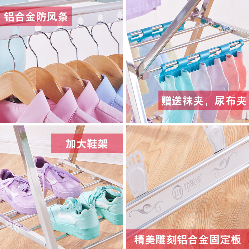 Balcony cool drying rack falls folds stainless steel drying clothesBaby baby bedroom hanging towel frame household rod