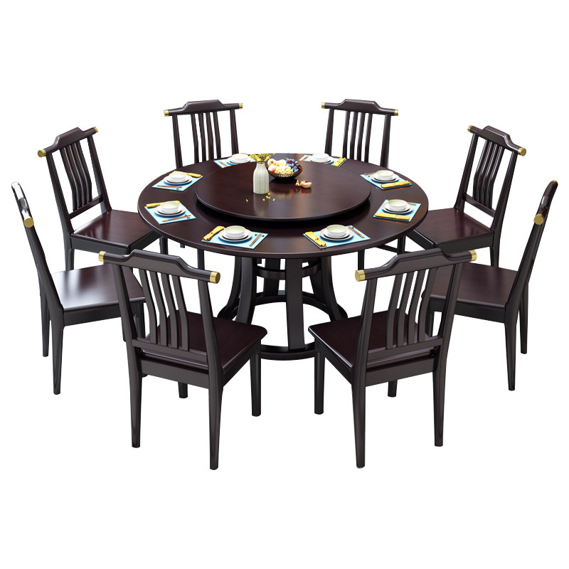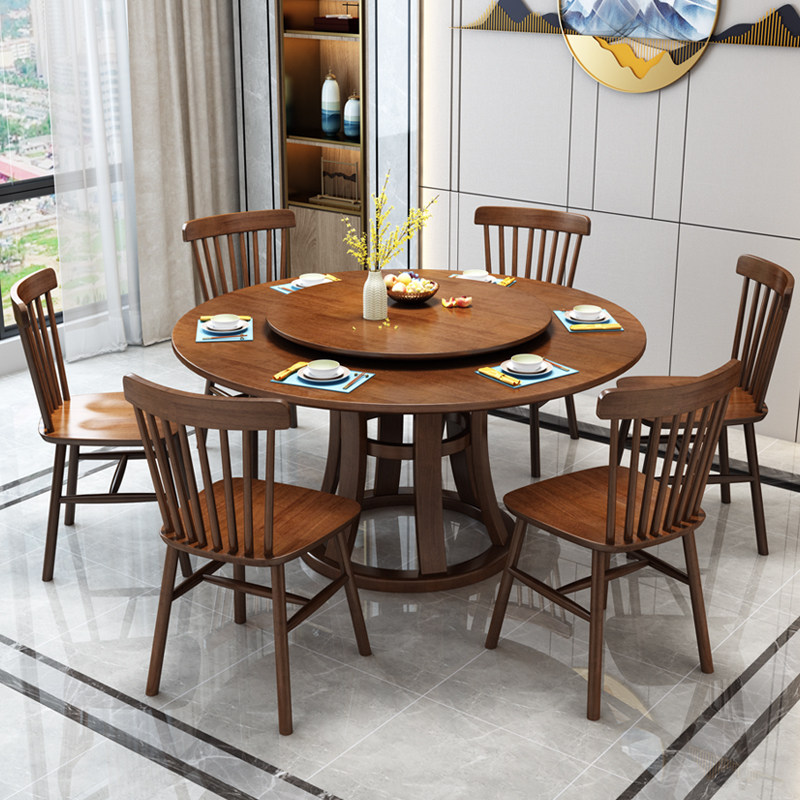 New Chinese style light luxury all solid wood large round table modern minimalist home dining table and chair combination large and small family round dining table