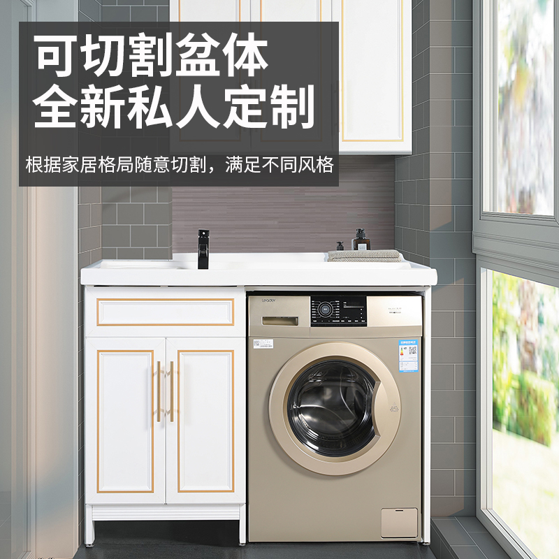 Seder Balcony Laundry Cabinet Washing Machine Companion With Washboard Ceramic Laundry Washbasin Integrated Cabinet Customised