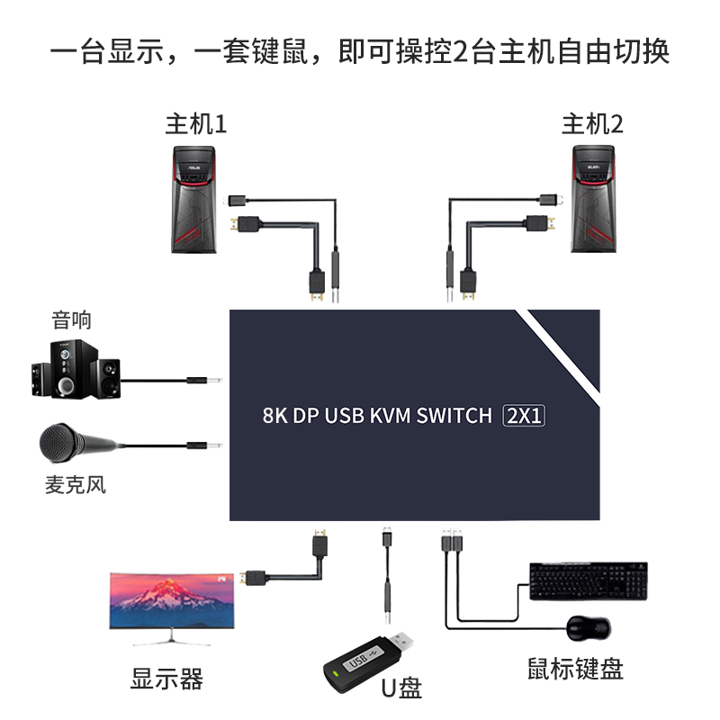 dpkvm switcher binary 1 out 2 pen 1 2 ultra - clear 4k60hz two computers shared keymouse monitor